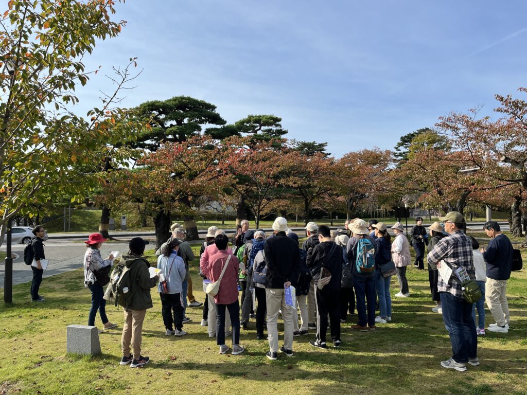 紅葉が色づきはじめた鶴岡公園二の丸広場には40名を超える参加者が集まりました。