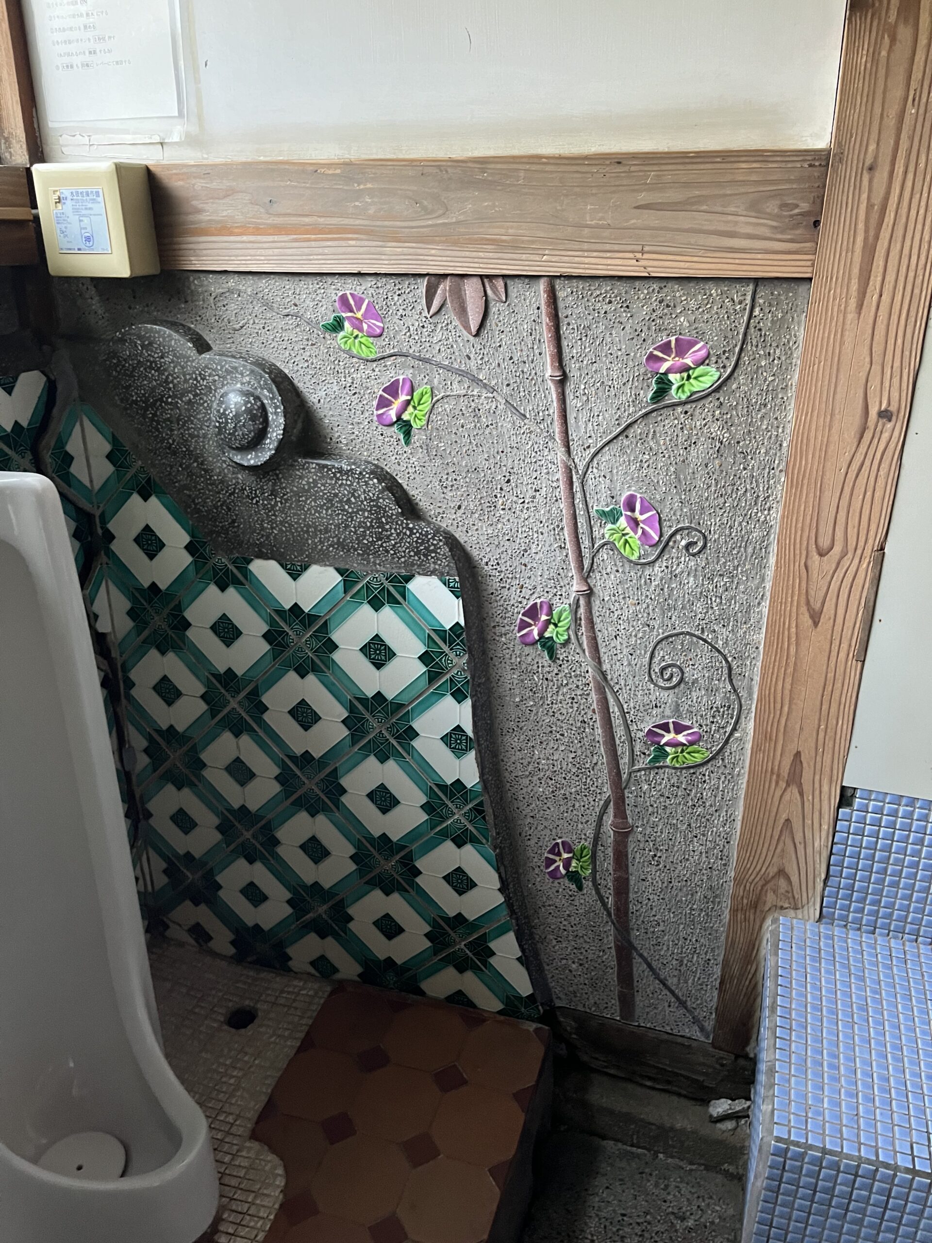 建物の細部には、再現するのは難しいような凝った意匠の細工がたくさんあり、中でもマジョリカタイルはとても有名です。卵焼きが有名で午前中に売り切れるほど人気です。