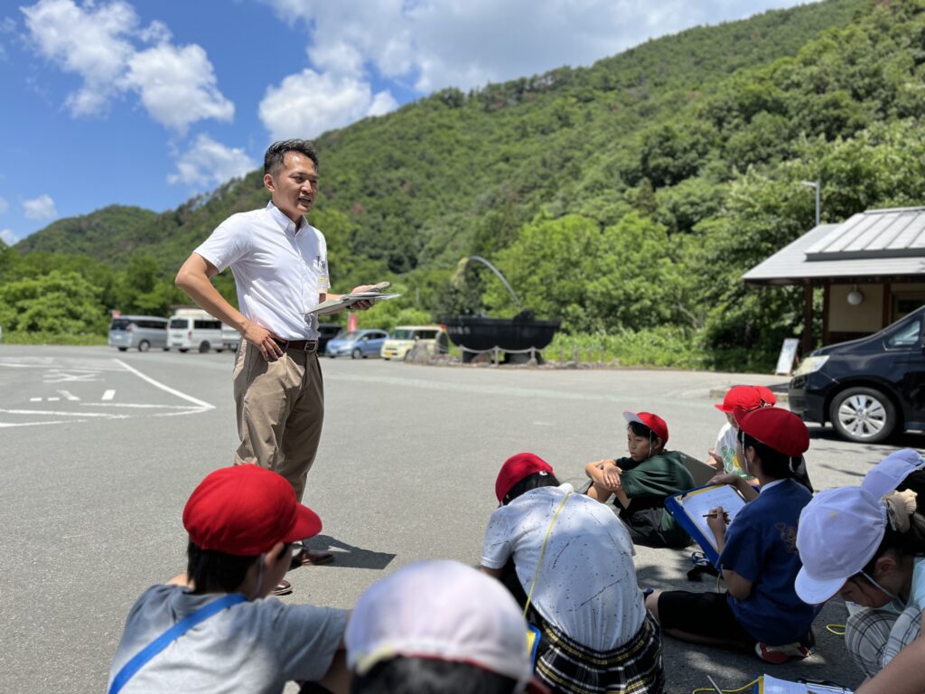 村山総合支庁河川砂防課尾形河川管理主査より馬見ヶ崎川河川敷周辺の整備の話を聞きました。子供達が普段遊んでいる釈迦堂公園やせせらぎ水路はどのような意図で整備したのかを学びました。また、安全のための河川整備にも触れ、この仕事ならではのやりがい等を語っていただきました。河川や道路の整備は県や国、市町村の土木職が直接的に関わり担っていく仕事です。
