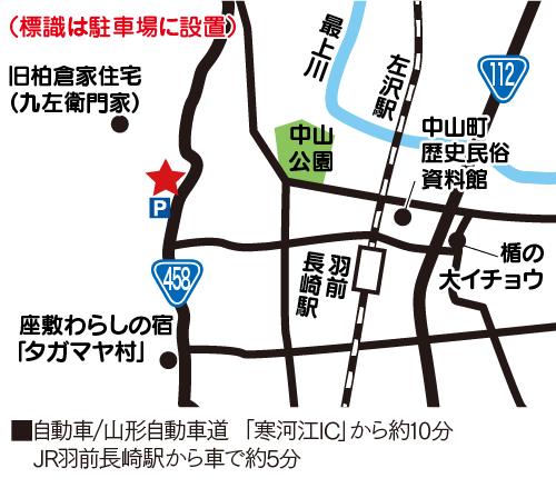 自動車 : 山形自動車道寒河江I.C.より約10分