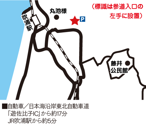 自動車:日本海沿岸東北自動車道遊佐比子ICより約17分